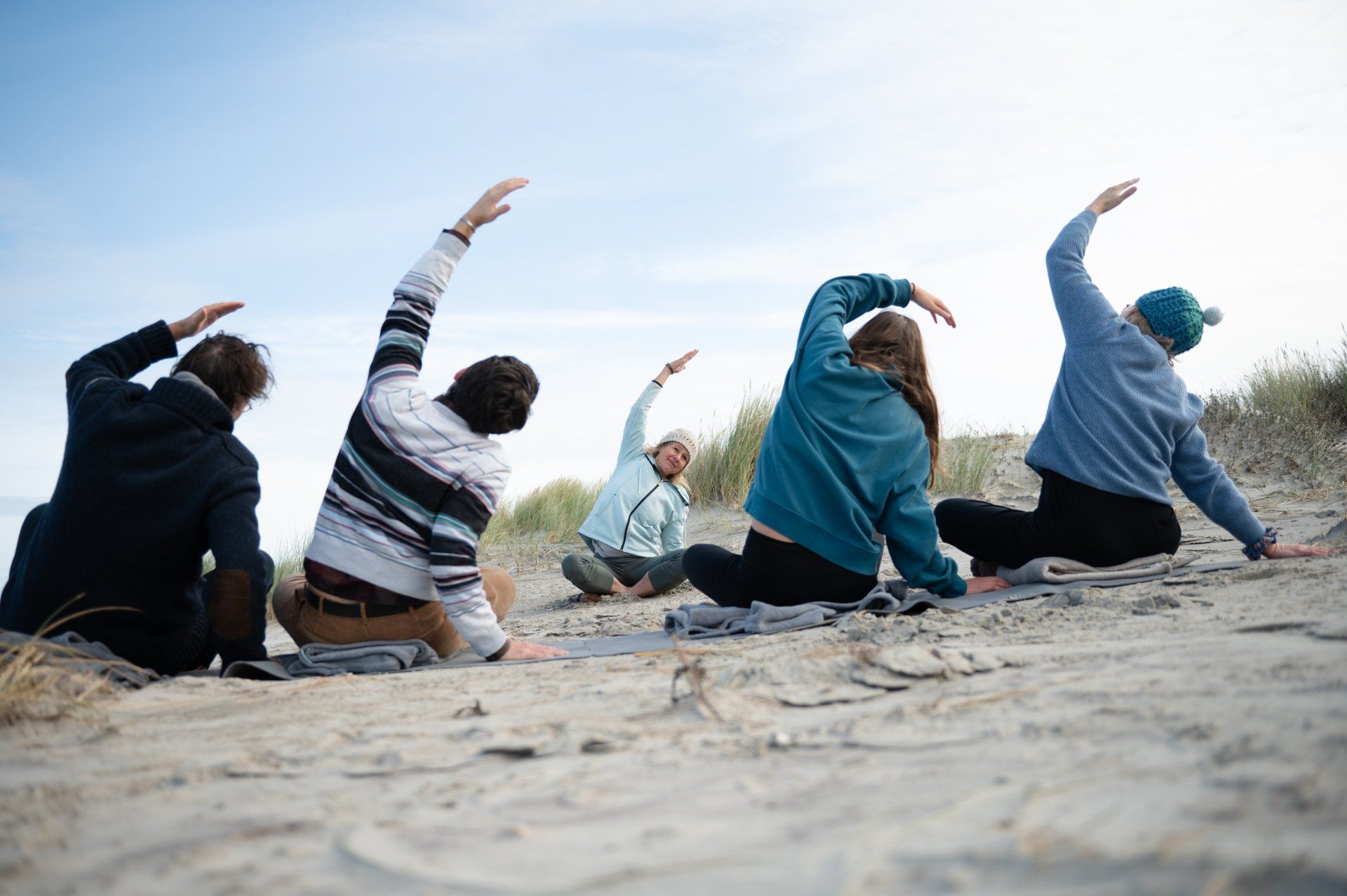 Ik begin met een klein yogaklasje voor mijn kinderen in de huiskamer, wat al snel uitgroeit tot een professionele onderneming voor iedereen, volwassenen en kinderen. Yoga aan zee, in de duinen, bij het Wad; iedere plek biedt weer iets anders, iets nieuws. De luchten veranderen voortdurend, het tij zorgt voor een steeds veranderend strand. Het verveelt nooit, er is altijd iets nieuws te ontdekken. In de natuur en ook in mijzelf.
